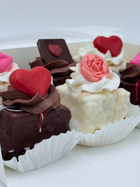 Includes 12 Baby Cakes with assorted Valentine Chocolate edible decorations